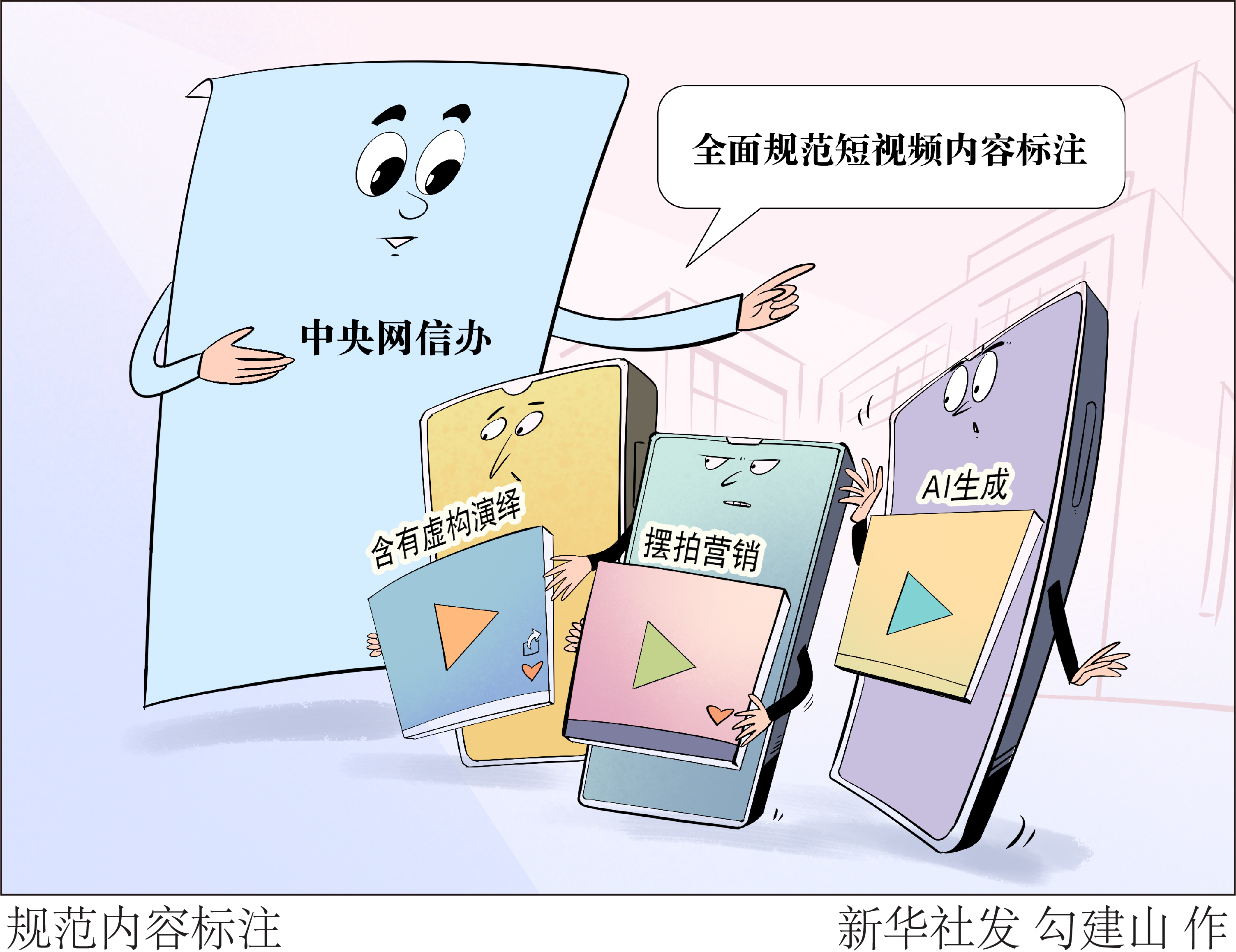 记者3月21日从中央网信办获悉,当前,网站平台关于短视频内容标注的标准和尺度不一,一些含有虚构演绎、摆拍营销、AI生成等内容的短视频未进行规范标注。对此,中央网信办指导网站平台全面规范短视频内容标注。近一个月以来,6家重点平台深入清理虚假摆拍等违规短视频3.7万余条,处置违规账号3400余个,补充标注短视频60余万条。